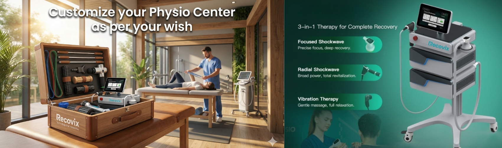 Your custom clinic Hub "Modular. Compact. Complete." (Why buy separate units? Build your own customized therapy tower. Combine Laser, TECAR, Shockwave, and Ultrasound modules into one space-saving, mobile workstation designed for your specific needs)
