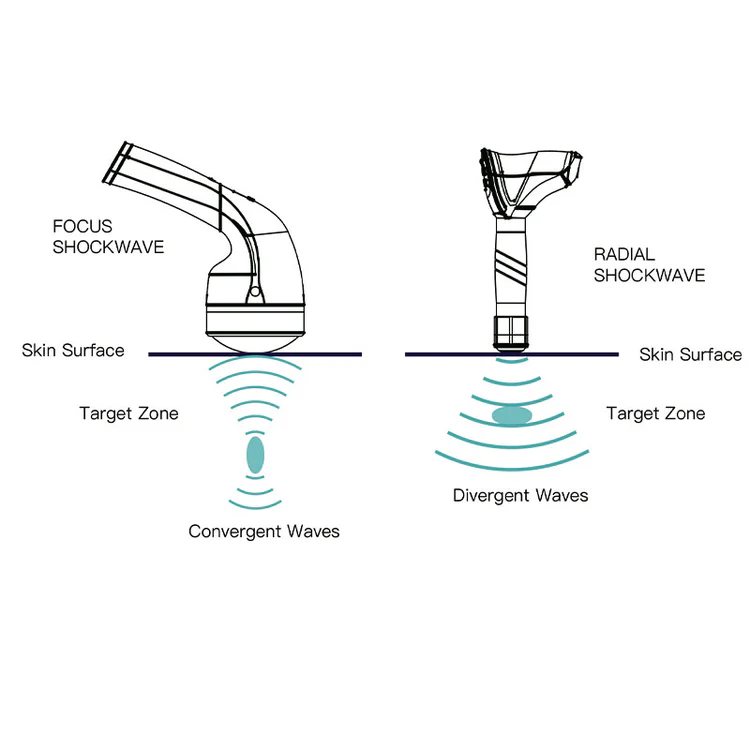 - Focused Electromagnetic Shockwave – Accurate, stable energy targeted to specific tissue depths.